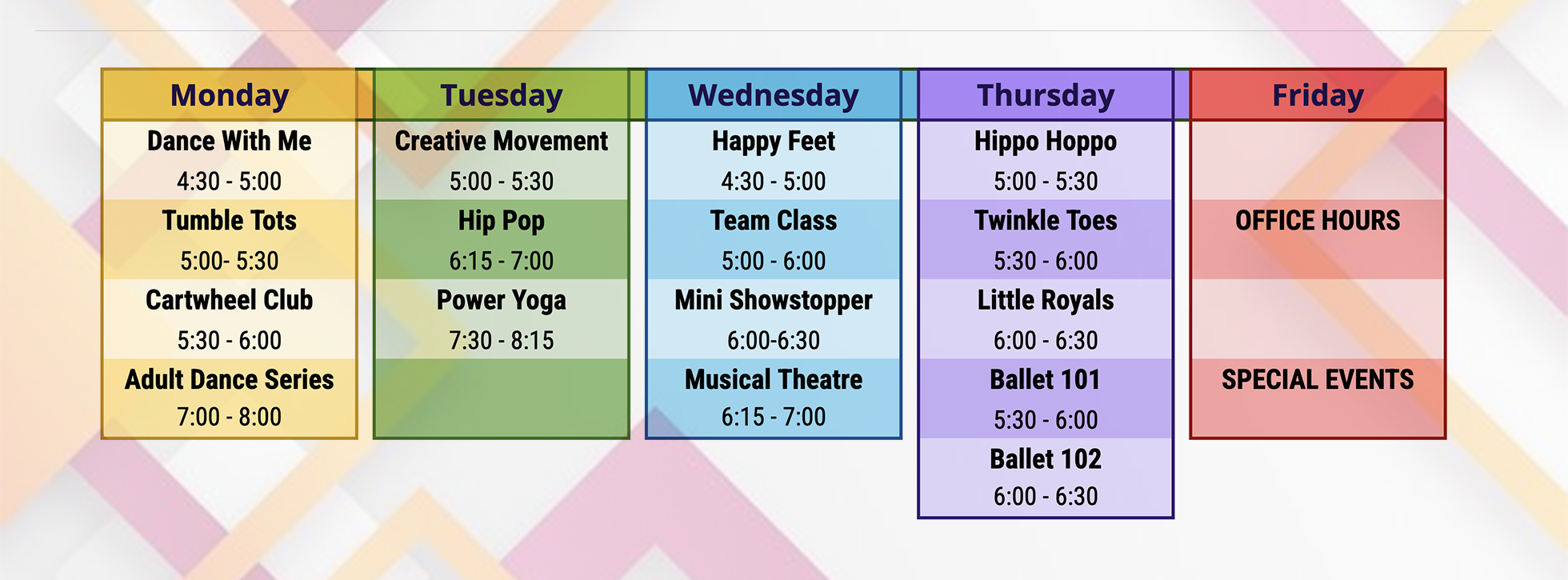 This calendar page is your one-stop shop for staying in step with RL Dance. Weekly classes? Check. Special events? Yup. Sudden schedule switch? You guessed it — we’ll post it on Facebook before you even find your other shoe.